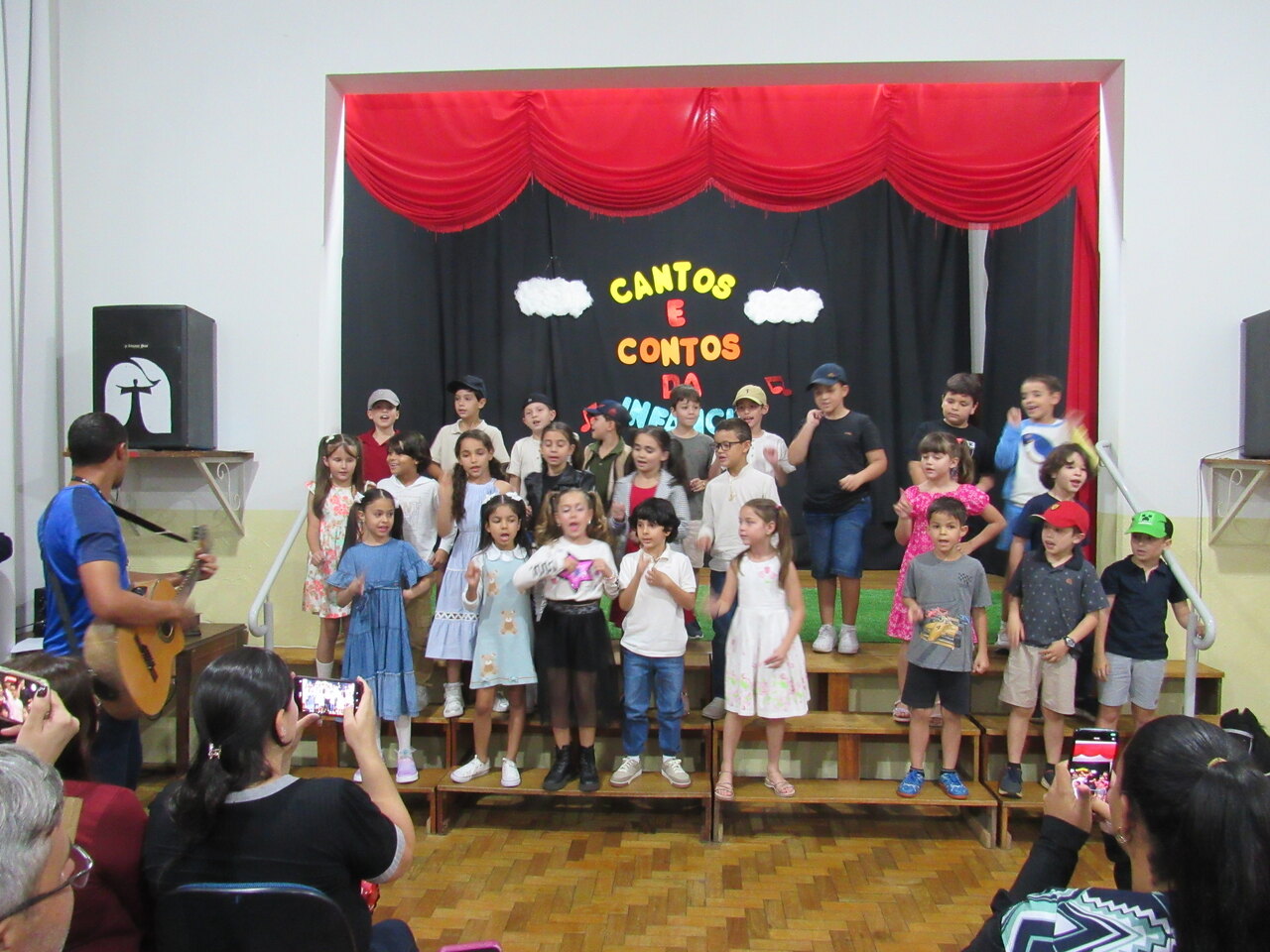 Os estudantes demonstraram com entusiasmo e desenvoltura os aprendizados adquiridos ao longo do projeto. Por meio da arte e da interdisciplinaridade, exploraram contos, poesias e brincadeiras da infância.