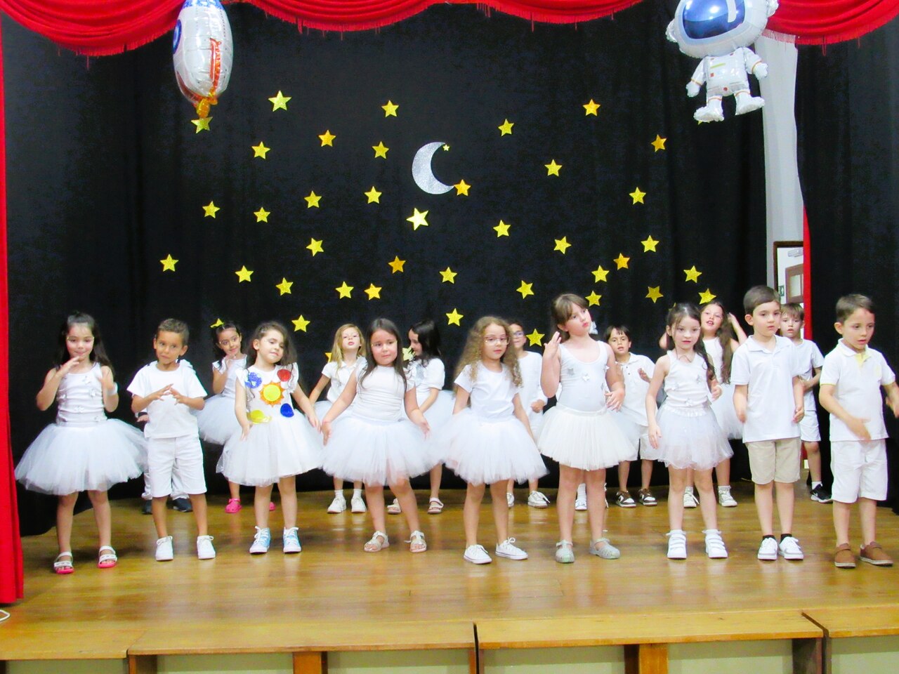 Foi uma experiência incrível! As crianças mergulharam no universo da imaginação e do conhecimento, decoraram as falas dos personagens com entusiasmo e alegria, vivendo cada planeta e astro com muita dedicação.